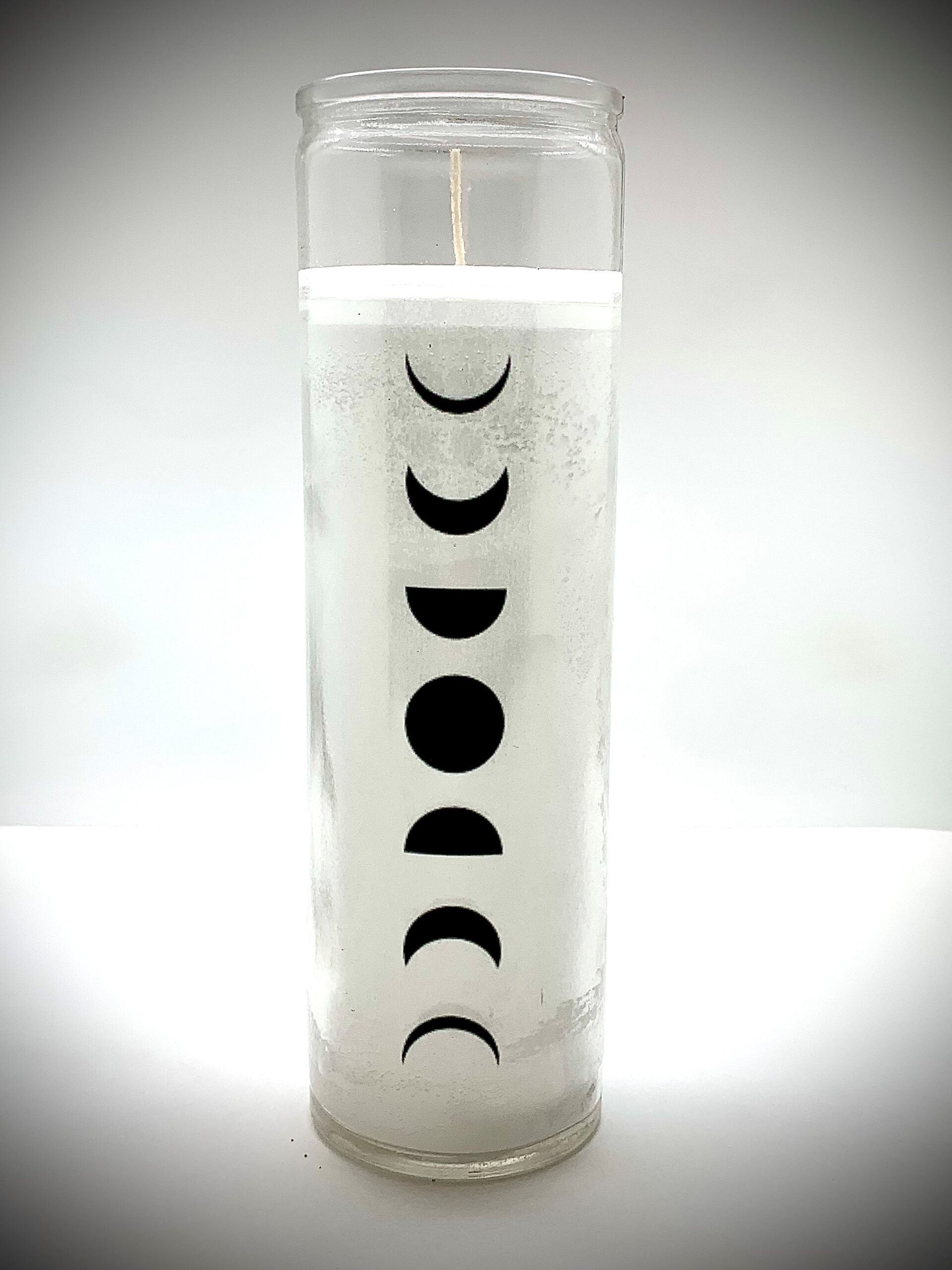 White wax with Black Moons. Burn for New Moon or Full Moon as is to attune with the Moon’s energies. A great intention candle! Poke holes in a geometric design representing your intention into the candle wax. Herbs & oils can be added. Burns about 120 hours and is made of a proprietary blend of hand-poured specialty paraffin waxes. All of Ceridwen’s DXM candles are handpoured and individually dressed and blessed with our oils, herbs, or gemstones enhancing its power.